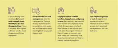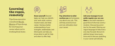 Unlike mid-career and senior-level workers, Gen Z hasn’t yet developed work habits or strategies and isn’t used to working standard business hours. There are fewer organic chances to find a mentor at work or to socialize naturally online, and collaboration tools can’t yet replace in-person teamwork. It’s harder to learn the subtle (and even the not-so-subtle) professional norms that go along with each company’s environment. Like anyone starting out, they don’t yet know what they don’t know.